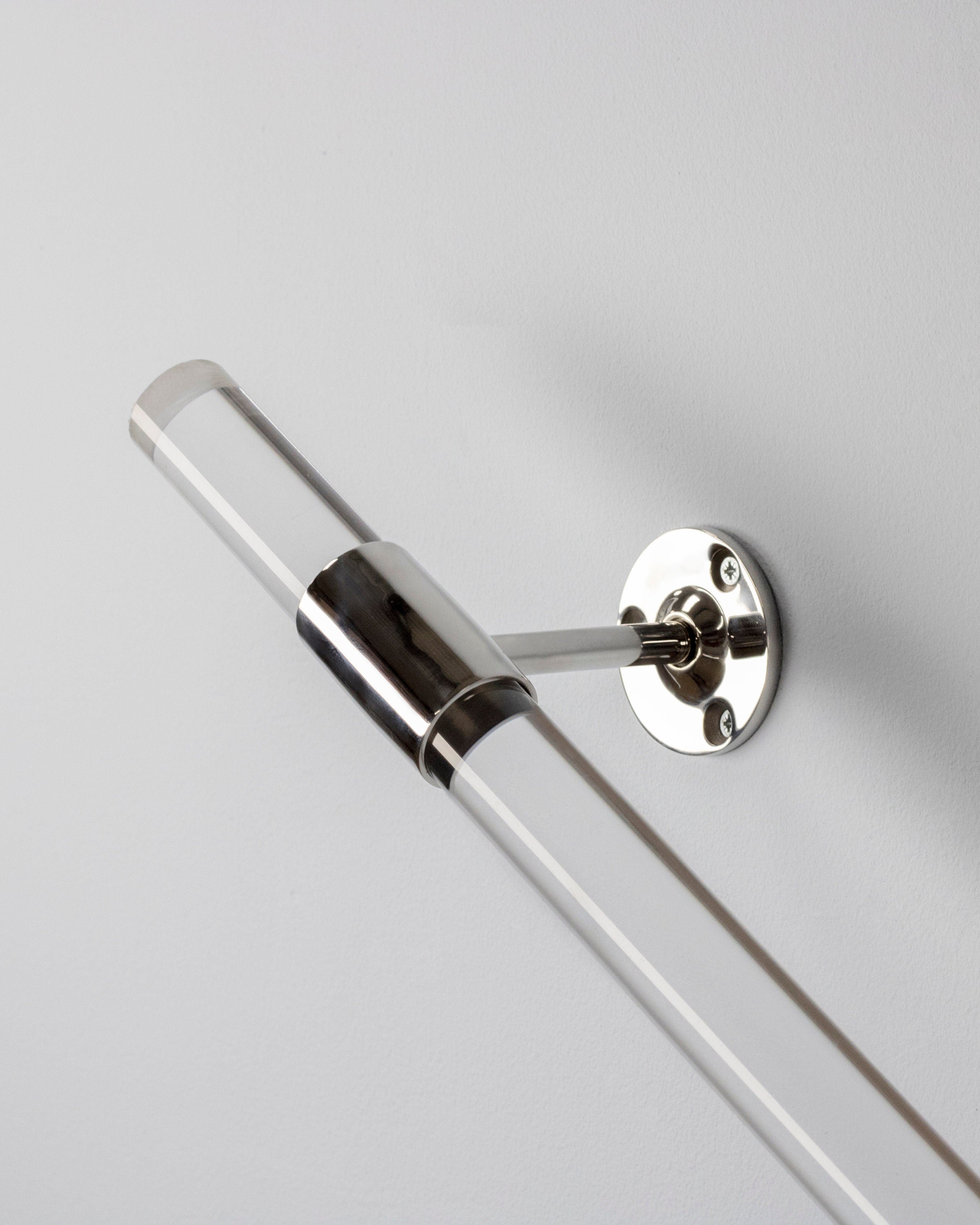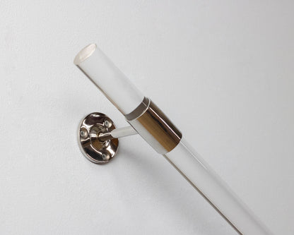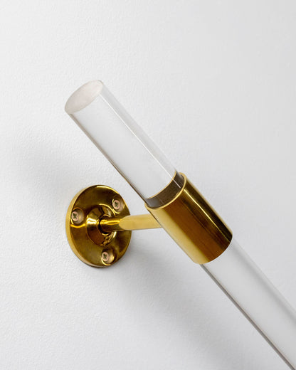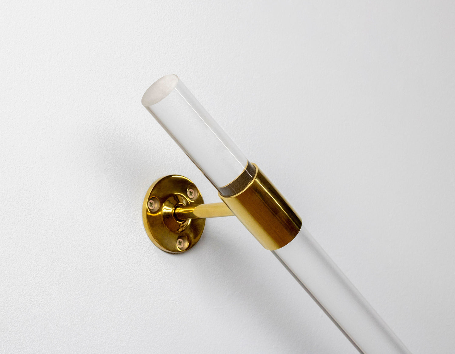 Our modern handrails add a minimalistic feel to any indoor space, from homes to garages, workshops, and offices. Installation is straightforward and requires only screws for mounting to wood, brick, or concrete walls. The round shape and smooth surface provide comfortable handholds, and the Lucite rods are highly durable and easy to clean. Brackets, available in Gold and Silver, brackets come in numbers depending on your chosen length, and additional T-Style brackets are included for longer lengths. Each bracket is 8-11cm away from the wall.