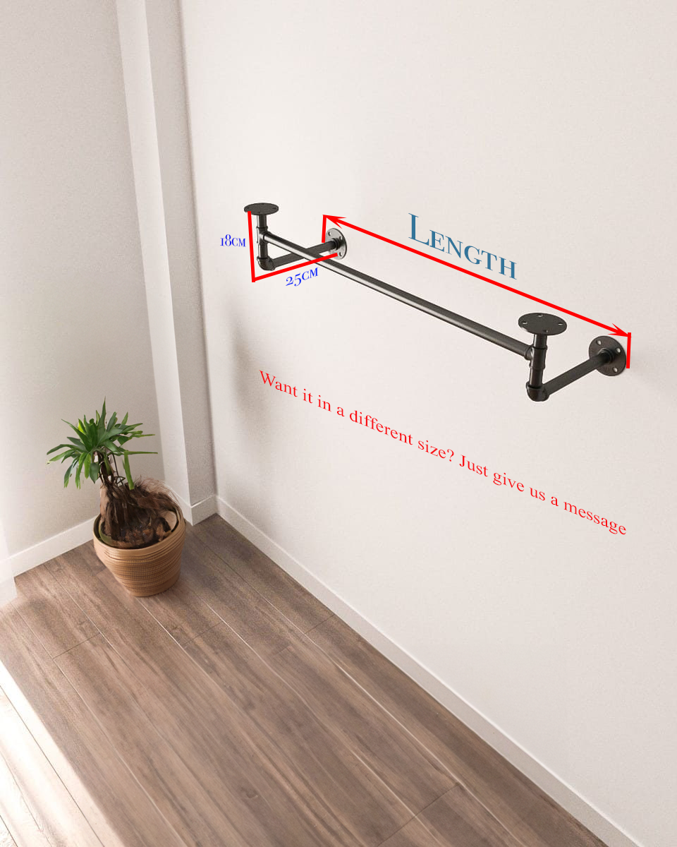 Our Aarin Industrial Pipe Wall Mounted Clothes Rack is a custom-made clothes hanger rack that combines strength, style, and functionality. Crafted with robust iron construction, this pipe clothes rail ensures durability and stability. Whether used as a clothes stand in bedrooms or a clothes rack in retail stores, laundry rooms, and boutiques, it offers a retro touch to your décor. This custom-made design allows for easy wall mounting, providing ample storage for clothes.