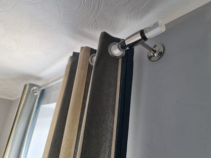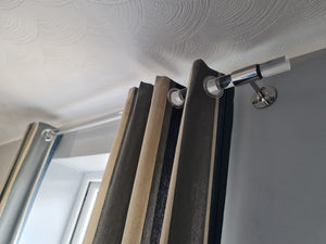 Our curtain poles are available in custom sizes to perfectly fit any window. The sturdy brackets extend 12cm from the wall, providing reliable support for your curtains and enhancing their drape. Choose from three chic bracket colours to seamlessly integrate with your existing room aesthetics or to create a new focal point.