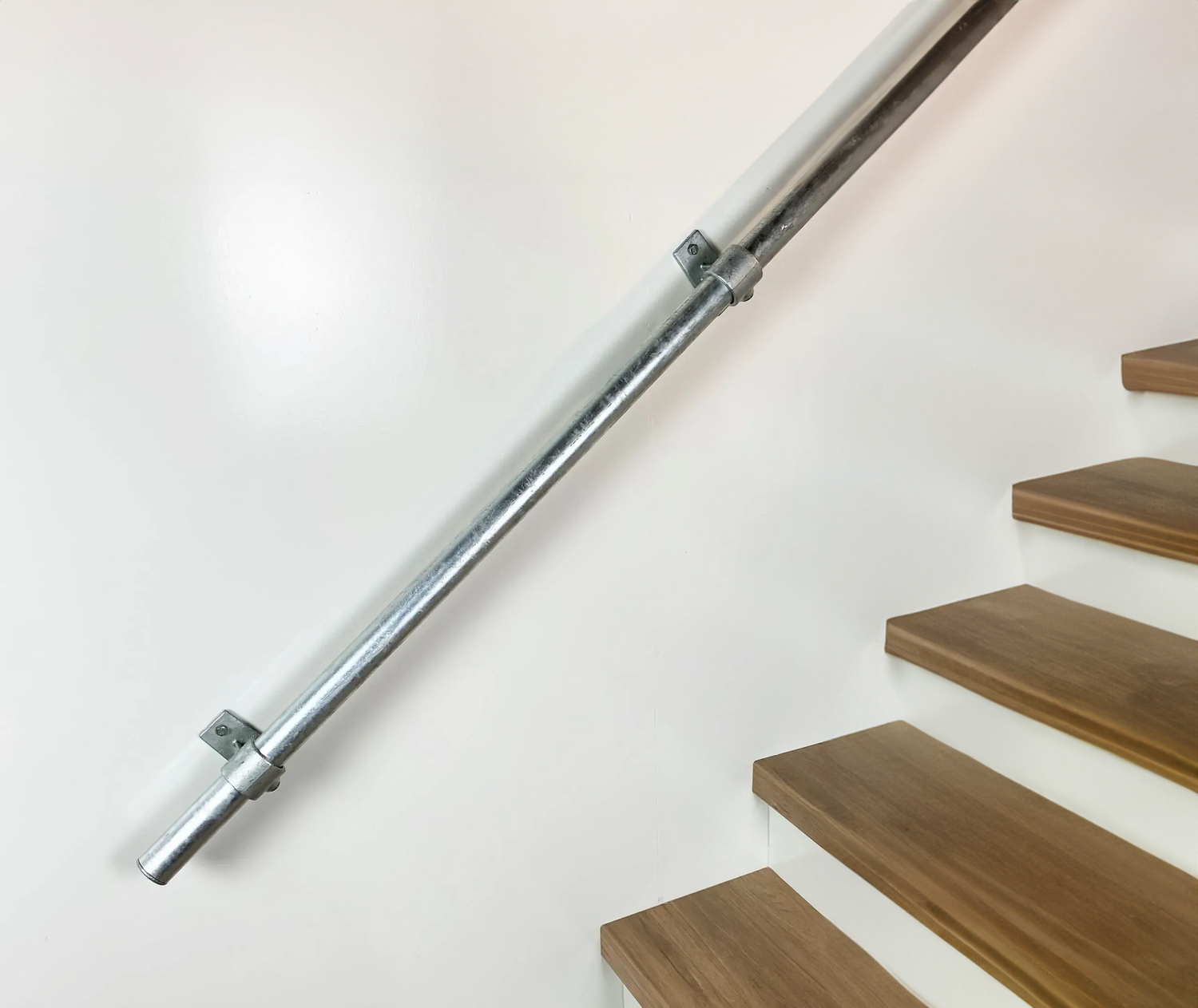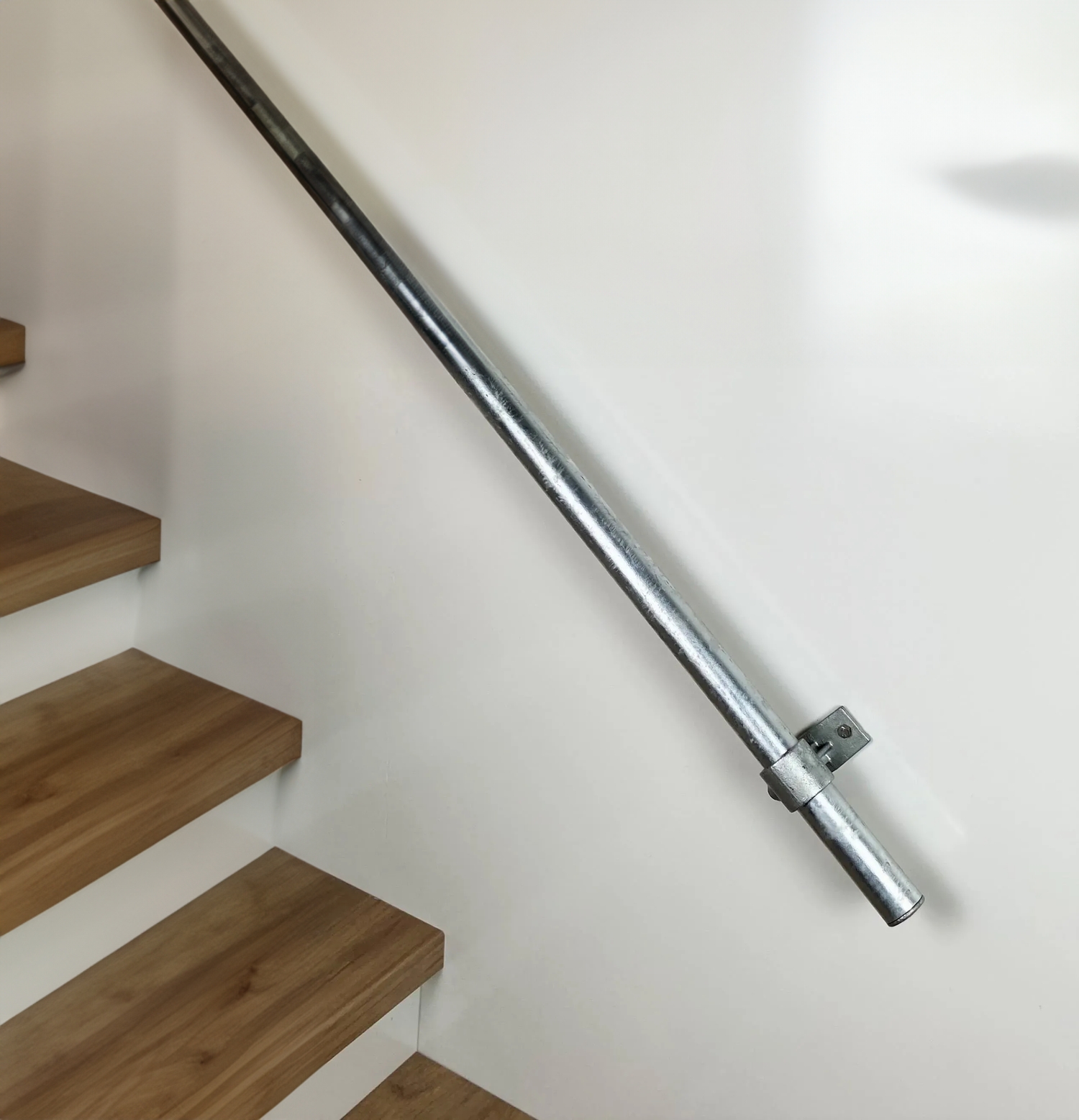 Nos rampes confèrent une touche industrielle unique à toute maison, atelier, garage ou bureau. L'installation est simple : il suffit de les visser dans les supports muraux et de les fixer avec des vis d'expansion sur les murs en brique, en bois ou en béton. Les rampes ont une conception de tube rond pour une prise en main confortable. À l'intérieur, elles sont faciles à nettoyer et nécessitent un entretien minimal. La sécurité et la durabilité sont assurées par un tube en fer forgé ultra lisse (diamètre 26,99 mm). Pour des longueurs plus longues, un support de style T supplémentaire est inclus.