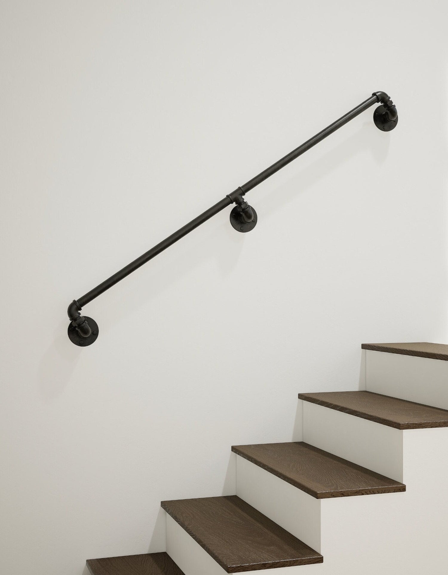 This industrial-inspired is the perfect compliment to add to any home, garage, workshop, or office. Easily installable with wall mounts and expansion screws on wood, brick, or concrete walls, this handrail is safe and durable. Its round pipe design provides comfort to those that hold it, and its stylish surface is easy to clean and maintain. Depending on the length selected, the handrail may include additional T-Style brackets. Its wrought iron pipe material and diameters of 26.99mm and 33.3mm make it the perfect choice for stylish handrails.